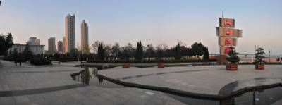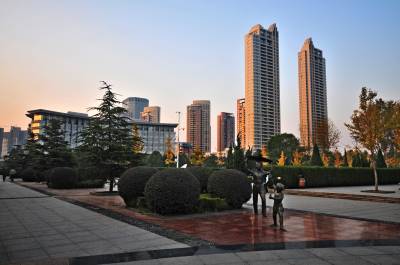 武汉江滩的美丽正与堤内的城市建设相辉映。