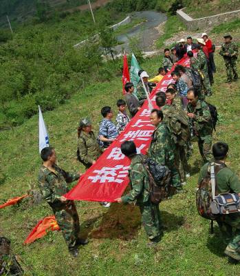 绿色锦绣 2007年五一节,恩施州的自愿者们在清江源头,展开长幅,进行签字,宣传保护清江。 利川 吴华斌 15071891386