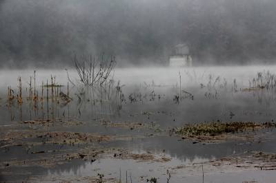 初冬雨后的水面升起的迷雾隐藏了丹江口一望无际的水面,库边的那些小景同样迷人。丹江口水库一年四季欢迎您来采风。