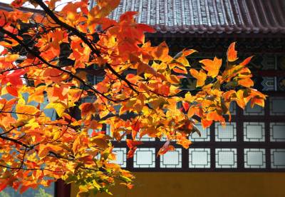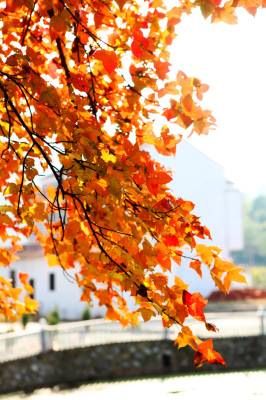 深秋天的小雷山的风景独好,一大片一大片鲜红的,橙红的,中黄色的枫叶点缀着所有的空间,美丽得让人吃惊。