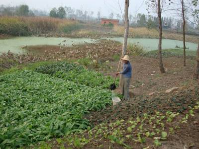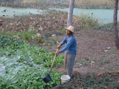 昔日荒滩地 今朝效益园 为了节约耕地,创造一定的物质财富,绿化美化家园,近年来,汉川市麻河镇东湖村的村民纷纷在农田周边的荒滩荒坡上种起蔬菜,除供家庭食用之外,将剩余部分拖到菜市场出售,一年下来,也有一笔可观的经济效益。 图为11月8日,该村刘老汉正在他开垦的菜地里浇水的情景。 (汉川 2009摄)摄影师 邹开建通联:汉川市信访局电话:13197382491