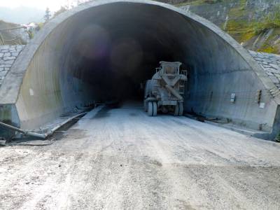 龙王垭隧道 12月11日,全线贯通后的竹溪县龙王垭隧道正在加快电览沟和排水沟建设。该工程长1888米,双车道,是十堰市最长的公路隧道。(本报视界网王忠春 摄)