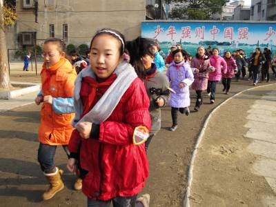 日前,钟祥市莫愁一路小学积极开展冬季健身运动,让全校师生跑起来,跳起来、动起来。他们利用晨跑、课间、课外活动时间组织师生开展冬季长跑、跳校园集体舞、丢沙包、跳绳、踢毽子等寓教于乐的活动形式,有效地保证了每天锻炼一小时。图为师生开展冬季跑步活动的情景。 (本报视界网 杨中进 摄)