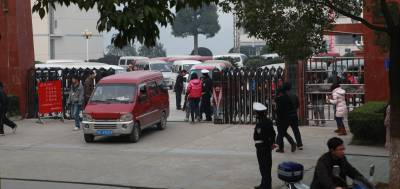 图三:等到步行回家的学生离开校门后,搭载学生回家的车辆被依次放行;