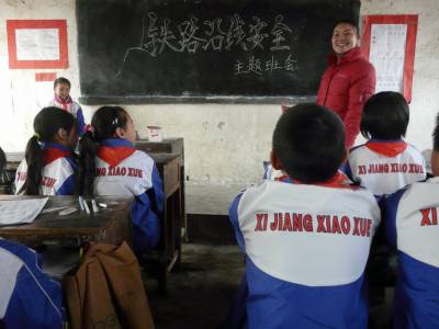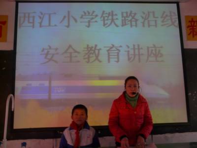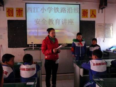 西江小学开展铁路安全教育 新建的沪蓉高铁(汉宜段)铁路已于11月28日进行联调联试全线送电,铁路接触网电压为27500伏,届时列车时速将达到200公里/小时,为确保铁路沿线师生的生命安全。近日,铁路所途经的汉川市西江乡中心小学充分利用红领巾广播、黑板报、主题班队会等宣传铁路安全知识,组织师生认真学习汉宜铁路公安处编印的《铁路安全宣传手册》,积极做好学校师生安全教育工作。(通讯员孙文平 摄)