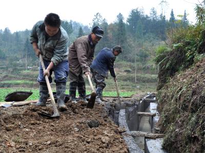 来凤:村民联户修水渠 15日,来凤县革勒车乡三房沟村6、7组的村民在马家坳修联户水渠。该乡自启动“万名干部进万村、挖万塘”活动以来,除对较大的山塘进行集中开挖外,还对相对较小的组级山泉、水渠进行联户整修,让有限的水资源得到合理运用,既保证了人畜饮水不受影响,又为来年春耕用水提供了保障。 本报视界网 姚丙然 来凤县革勒车乡文化服务中心 电话:13997799385