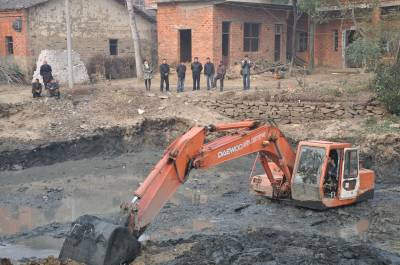 12月15日,麻城市白果镇冯氏祠村林家寨门口当家塘大型挖掘机在清淤塘泥。冯氏祠村是麻城市交通运输局“三万”活动定点帮扶对象,连日来,该局积极响应省委、省政府号召,组织专班奔赴冯氏祠村等3个定点帮扶村,为村民提供资金及力所能及的帮助。本报视界网 徐友才摄