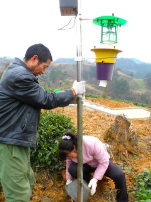 专业合作社用上太阳能杀虫灯 12月15日,竹溪县塔二湾茶场安装了六盏太阳能杀虫灯。同时,龙王垭茶叶合作社和水坪镇阎家坝特色土地股份合作社等都用上了太阳能杀虫灯,代替化学农药防治作物病虫害。(本报视界网王忠春 摄)