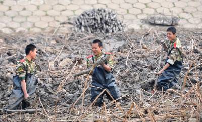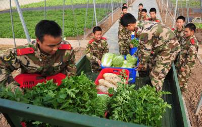 武警湖北总队:蔬菜淡季不淡 12月14日,武警湖北总队农副业生产科技示范园莲藕喜获丰收(图1)。 战士们蔬菜采摘后,装车配送到各单位,使基层官兵能吃上新鲜蔬菜。(图2) 武警湖北总队后勤部广泛引进和应用先进生产技术和优良品种,因地制宜,科学统筹搞好农副业生产工作,确保各类蔬菜淡季品种丰富,丰富了官兵“菜篮子”,提升了官兵伙食质量。