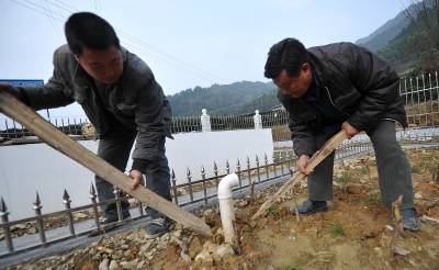 12月16日,宣恩县椒园镇老寨溪村,工人在“人工湿地”上管理刚栽下的植物。 该县首批共4个专门处理农村生活污水的“人工湿地污水处理系统”日前建成。在人口相对集中的村庄建设农村污水收集管道,将生活污水集中到“人工湿地污水处理系统”中进行净化处理,从而使农民集中居住的村庄环境得到改善。 据当地环保部门介绍,今后每年将在农村建设一批“人工湿地污水处理系统”,用以改善山区农民的生活环境。(本报视界网 宋文 摄)