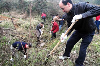 黄石市西塞山区教育局、残联的30名党员干部来到西塞街办凉山村,为这里的农田清掏沟渠。