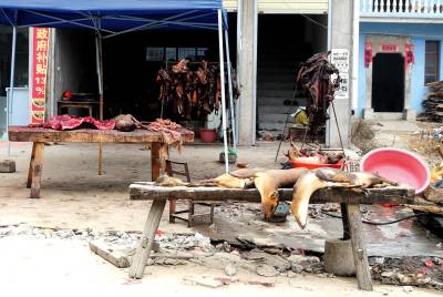 湖北大冶市刘仁八镇街头又见麂子、野猪、锦鸡等多种国家或省级保护动物摆在街头贩卖。