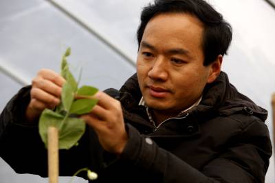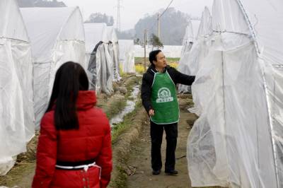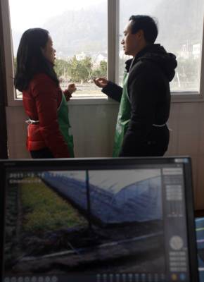 2011年12月16日,刘开鸿、盛俊夫妻俩在电脑监控室,观察生态大棚蔬菜长势。2000年刘开鸿、盛俊夫妇双双赴上海打工,积累了丰富的农副产品生产、加工、经营等方面技术和经验。2008年春,夫妻俩返回湖北省长阳土家族自治县龙舟坪镇全伏村,在自己的家乡创办幸福农庄。刘开鸿分工生产技术、跑市场,妻子盛俊管理财务内当家。目前,已建成了3000多亩现代农业生态种养植基地,实行生产加工销售一条龙。今冬,在长阳县城和宜昌市建成两座蔬菜营销市场,对农庄生产的蔬菜直接入市销售,既解决了过去每到冬季,城镇居民买菜全靠外地调运进山,同时发挥了平抑蔬菜市场价格的作用。据悉:吸收到幸福农庄打工的当地农民100多人,还与周边500多户农民合作开发种养植业3000多亩。文振效