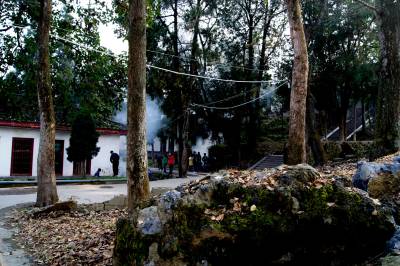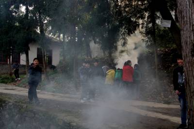 学校参天木木成林,每到秋冬季节,落叶满地。为了校园的整齐洁净,学生分班级清早轮流打扫。在打扫中,对于泥块灰尘清理后倒入垃圾池,对于树叶进行集中烧掉。现发几组图片,展现当时情景: