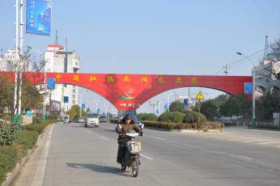 12月17日,杜鹃花城——麻城市的天蓝街道美。自“人间四月天,麻城看杜鹃”城市名片叫响后,该市市委、市政府切实加大城市的综合环境整治力度,并就因地制宜增添绿色,美化靓化城市。图为该市利用过街渡槽设计成的城市名片宣传广告。 本报视界网 徐友才摄