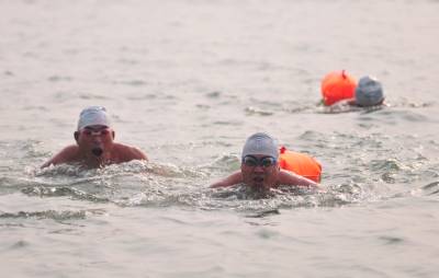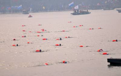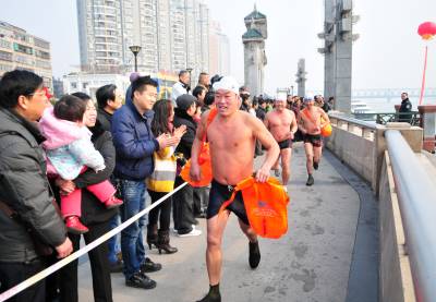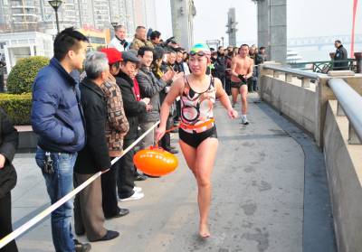 襄阳举办全国第三届冬泳文化节(千名健儿冬游汉江)