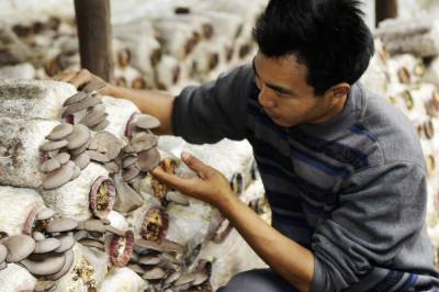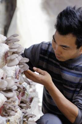 > 返乡青年种菇奔富路