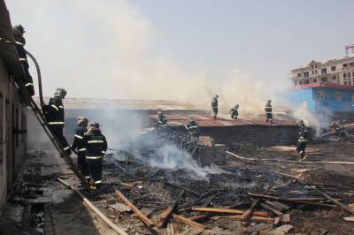 天门一建筑工地突发大火