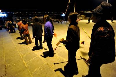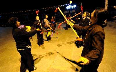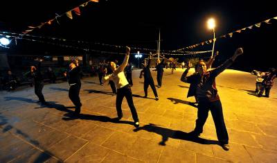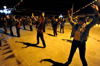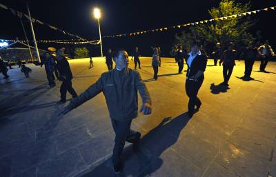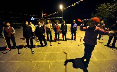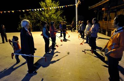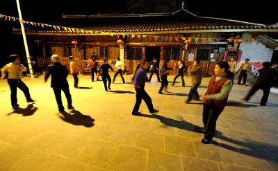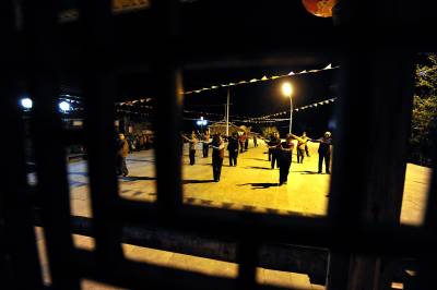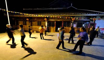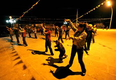 4月18日晚,宣恩县高罗乡板辽村的村民们在“七点舞会”上尽情跳舞。 宣恩县高罗乡板辽村每天有近百位农民在晚上7点左右按时赶到村子里的小广场参加“七点舞会”。跳舞已成为当地农民们生产生活的一部分。 农民们晚上在村子里跳土家摆手舞、“滚龙连厢”民族舞蹈,甚至还跳现代健身舞蹈。近3年来,参加“七点舞会”的农民越来越多,并已成为这个村子在新农村建设过程中的一道亮丽风景。本报视界网 宋文 摄