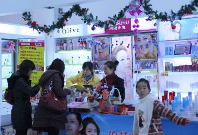 2009年12月24日晚,一位小朋友在美廉超市内的圣诞树前与“圣诞老人”拍照合影。随着生活水平的不断提高,西方的“洋节”如今已逐渐被百姓所接受。圣诞节前夕,三峡库区湖北省巴东县各旅游景点和商场都增添了圣诞装饰,节日气氛浓郁。