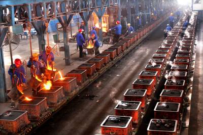 4月18日,湖北全力机械集团车间一片繁忙。据悉,该集团二期工程项目投资2.5亿元,引进日本东久自动化造型线、装配线、相配套的精加工线、熔炼及辅助设施,设计年产汽车铸件10万吨,年新增销售收入8亿元,预计今年10月竣工投产。 (本报视界网杨文明摄)