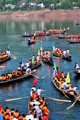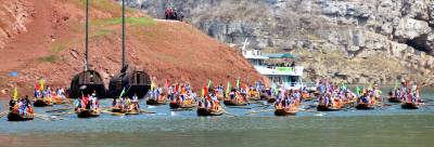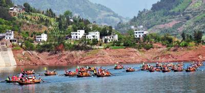 巴东旅游业又开始升温 4月18日,一批中外游客正乘坐豌豆角船亲身体现巴东县神农溪景区独特的旅游魅力。随着五一黄金周临近,来巴东旅游的中外游客一揰接着一揰。据旅游局统计,截止3月底,该县今年已接待游客60万人次,旅游收入近7000万元。本报视界网 梁勇 摄