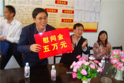 为农村教育事业“输血” 18日,省政府办公厅副秘书长黄国雄带领工作组人员,到安陆市烟店镇“三万”活动点,为烟店镇小捐献助学资金5万余元,解决了该校缺少课桌椅的燃眉之急。省政府办公厅住烟店镇工作组,在开展“三走进”的活动中,了解到镇小学生课桌椅十分欠缺,于是与该校建立了帮扶对子,为发展农村教育事业,办人民满意教育“输血”,深受广大师生的欢迎。(本报视界网 徐世德 张达全摄)