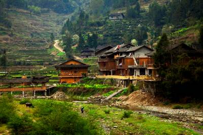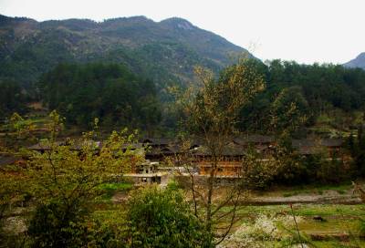 在恩施市小溪村有一至今保存完好的胡家大院,这是三个大院中较大的一个,有杆栏式土家吊脚楼房屋上百间,二十多个火塘,仍居住近二百人,一条清澈的小溪缓缓流过,复建的风雨桥横溪而跨,树木葱茏、竹林掩映、鸟语花香、茶园遍山,一派恬静和谐的氛围,真是仙居之地。(湖北视界网 张厚渊)