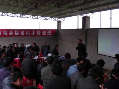 4月13日,黄梅102名插秧机手在接受机械化插秧技术培训。春耕在即,为进一步推广机插秧技术,加强农机安全监管力度,当天,该县举办了插秧机手培训班,免费向他们传授水稻机插秧技术,有效提高了插秧机手的实用操作和维修保养技能。(本报视界网 吴志雄 摄)