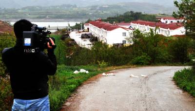 图0508号为为央视记者录制安阳镇余咀村外迁移民走后的场景时的情景。