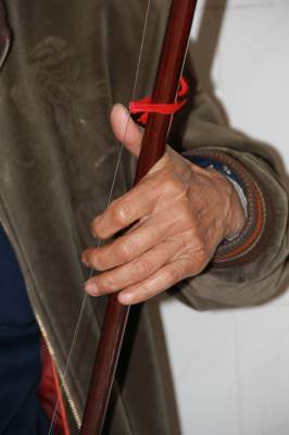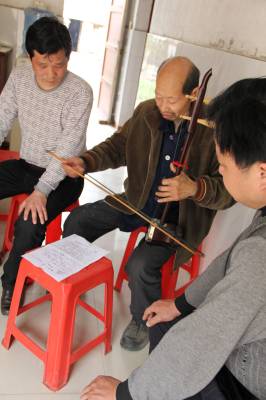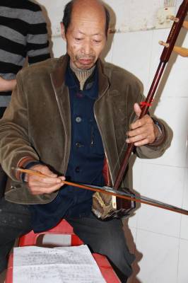 4月14日,记者再次来到了李良桓的家里。2004年,记者曾专访过李良恒,那时他70多岁,耳聪目明,创作热情高涨。现在老人已是80高龄,皱纹爬满了额头,耳有点聋,靠助听器与人搭话,但视力正常,思维敏捷。对记者的到来,老人一下子回忆起来,热情地招呼。得知记者的来意后,老人随即拿起二胡,边拉边唱他的新作《喜迎十八大》。