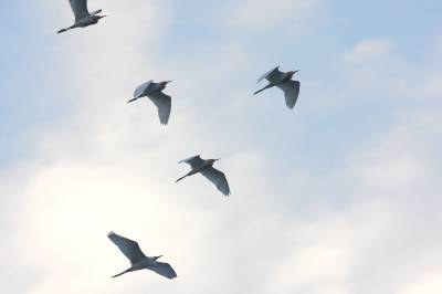 春暖花开,鹭鸟归来。4月15日早晨长江武穴段低空中有数群由南方迁徙而来的白鹭飞过。每年春播后的季节里许多鹭鸟来这一带稻田觅食除虫。