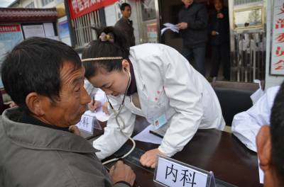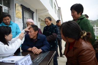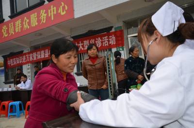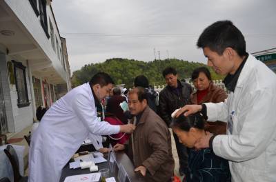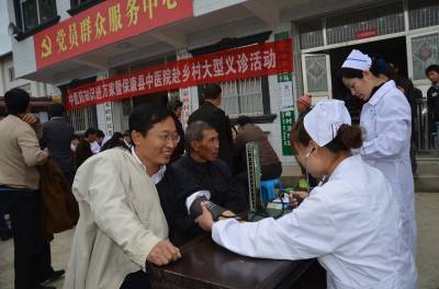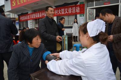 4月15日,医疗专家为保康县马良镇张家岭村村民免费检查身体。 当日,保康县中医院组织医院专家来到保康县马良镇张家岭村,开展中医药知识进万家暨以送医、送药、送健康进乡村为主题的大型义诊活动,为村民开展健康知识讲座,免费义诊,发放药品、健康知识宣传资料,并建立健康档案,受到村民欢迎和好评。共有300多位村民接受包括外科、内科、妇科、五官科、血压、血糖、心电图等在内的义诊科目。(本报视界网 陈泉霖 摄)电话:13476356829