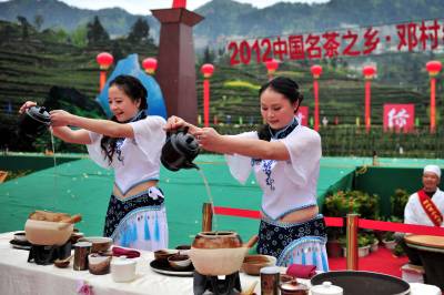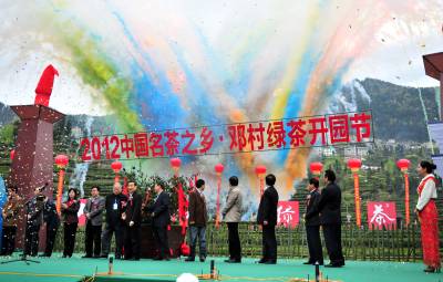 《天下湖北美》:2012年4月15日,宜昌“首届‘中国名茶之乡’邓村绿茶开园节”在夷陵区邓村乡举行,“敬茶-采茶-炒茶-品茶”等茶事活动在开幕式上精彩上演。活动由茶山序曲、茶神降瑞、茶乡春浓、茶韵悠悠、龙腾茶乡等5个部分组成,汇聚了“敬神”颂茶仪式、采茶体验竞赛、大师炒制新茶、现场斗茶品茗等环节,突出了邓村绿茶原生态、纯天然的品牌特色。