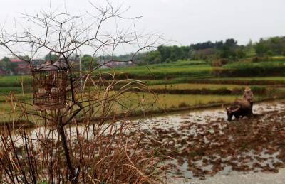 今天下午去了趟保安乡,看到田头小树上挂着一鸟笼,一中年汉子在耕田......