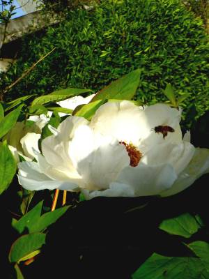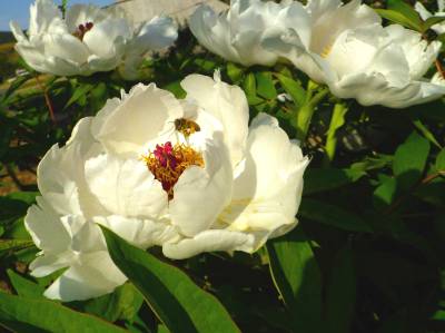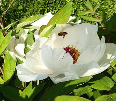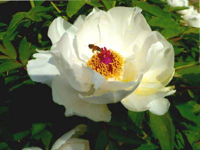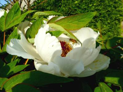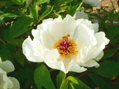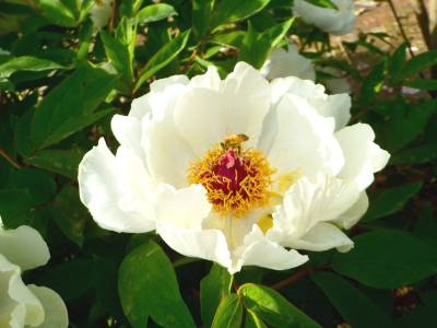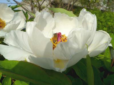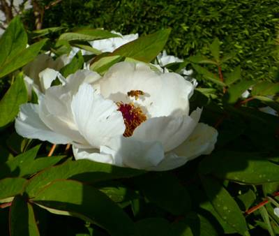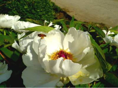 白牡丹 4月15日,竹溪县水坪镇船形寨村的牡丹盛开,引来路人、蜂儿聚足欣赏。近年来,该县百姓的生活悄悄地发生着变化,种花、赏花成为了家庭生活中不可缺少的内容。走进自然,感受四季轮回地恩赐。(本报视界网 王忠春 摄)
