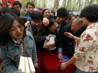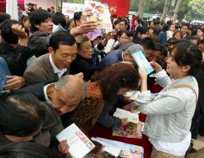 4月15日上午11时,武汉解放公园内武汉爱书读书的市民——武汉“读书之城”建设启动仪式在此举行。中午11点54分,某集团现场为广大读者免费赠送该集团出版的图书,吸引了现场的读者参与。但由于读者过多,现场秩序混乱,观众读者由愉快得书,演变成不文明的现场。