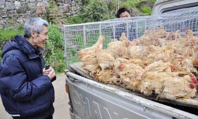 巴东:禽畜经纪人队伍活跃乡村 4月15日,几个家禽、生猪经纪人正在巴东县官渡口镇赵家湾村上门销售小鸡苗、小仔猪。