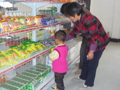 鞍子山移民新村开出首家小超市 4月16日,安阳镇移民赵义在鞍子山移民新村里开出首家小超市便迎来顾客盈门。鞍山移民新村是郧县安阳镇最大的南水北调移民安置小区,位于安阳镇鞍子山园艺场。目前已安置该镇安阳口、大柏树、罗河、前湾、王庄、小细峪等6个村内安移民83户307人。 图一:4月16日,一位移民在安阳镇鞍子山移民新村小超市选购生活用品。 图二:一位老奶奶正在给孙子买零食 (郧县 赵风舟供稿)