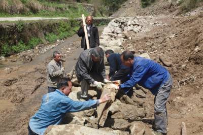 4月16日,湖北省竹山县文峰乡中沟村二组村民在崔家坪河道磊石砌岸(如图)。今春,该村通过一事一议表决,把建设项目话语权交给群众,利用农事互助组,采取以投工投劳等形式,决定治理河道50米,改田15亩,并积极向上争取项目资金,改善生产生活环境,发展壮大集体经济,增加农民收入。(操春林) 竹山县林业局 邮编:442200 电话:13997822006
