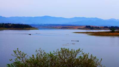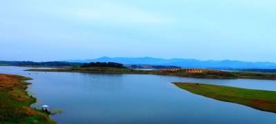湖北南漳:一汪湖水映晚霞