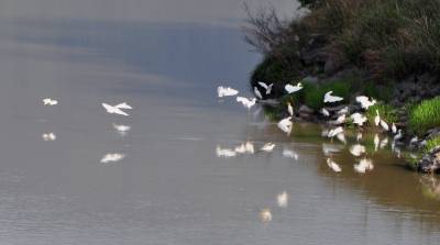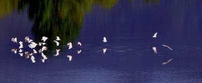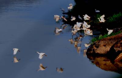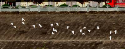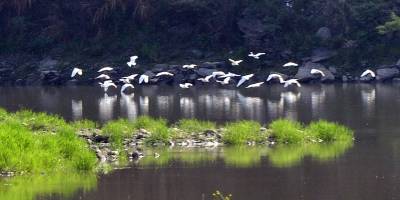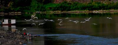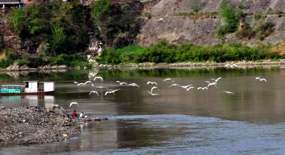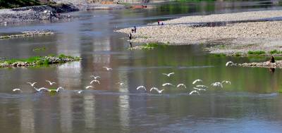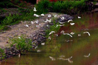 4月16日下午,一群30多只的白鹭群在竹山县城至潘口乡20平方公里的堵河流域内翔聚,它们时而在空中摆出各种阵容优雅盘旋,时而停在沙洲边梳理羽毛,时而在浅水边捕捉鱼虾,一副悠然自得的神情,引得多名拍客跟踪追拍。