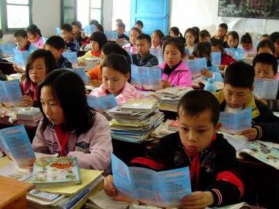 17日,巴东县官渡口小学学生正在阅读恩施州气象部门编写的《气候灾害防御指南》宣传册。时值防汛抗旱期间,巴东教育部门认真组织全县中小学生学习气象知识,通过学习,师生可以识别相关预警信号的标志、等级,掌握相关防御知识,做好气象灾害发生时的自我防御。据介绍,巴东发放《气候灾害防御指南》宣传册5万余份。(本报视界网 穆世祝 向国大 摄)