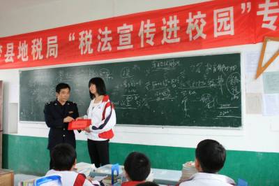 4月21日上午,云梦县地税局副局长王汉明带领税法宣传小组一行8人走进云梦县沙河中学,开展了“税法宣传进校园”活动,并结合“三联三帮”和“三万”活动给贫困学生送去了慰问金、纪念图书和体育用品。 摄影报道:陈保忠 鞠建明 张爽