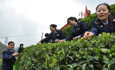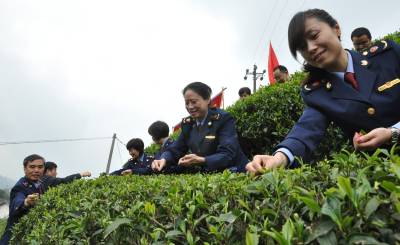 “我们真是有福气啊,工商局的干部免费来给我们打工——帮忙采茶了!”4月22日,恩施市芭蕉侗族乡寨湾村草籽坝组村民谢瑞英别提多高兴了,因为最近正是采茶季节,家里刚好缺少劳动力。当日,恩施市工商局系统党委组织了36名机关干部前往该村帮助村民采茶。该局局长周庆丰表示,得知芭蕉乡茶农网上招工采茶的消息见报后,该局迅速决定以这种方式来为村民办实事。本报视界网 周光兵 摄
