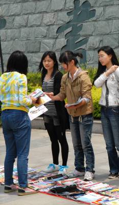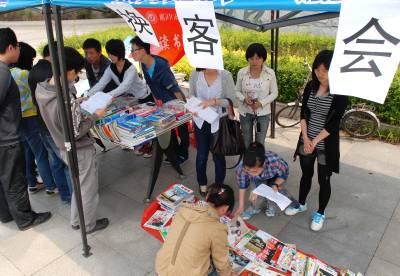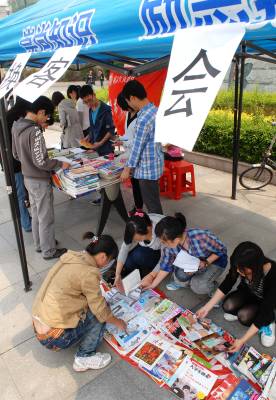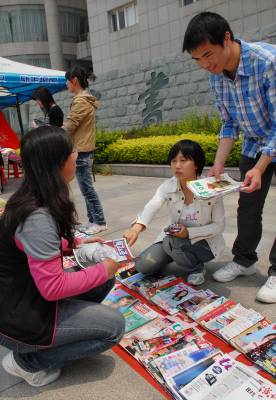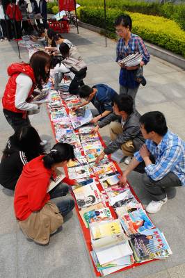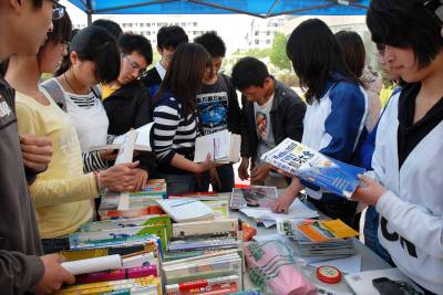 2011年4月22日,在第16个“世界读书日”到来之际,湖北经济学院读者协会举办的“换客会”热闹非常,同学们挑选自己所需要和喜爱的书籍。当日交易图书700多册。据协会会长杨鑫介绍,这次拿出交易的500多册图书,全部由在校生捐献。“换客会”余下的图书,一部分捐给图书馆,另一部分将参加“图书漂流”活动。