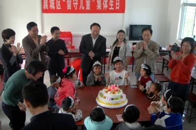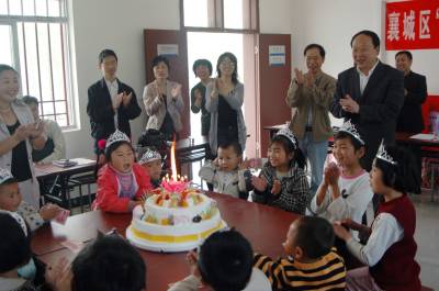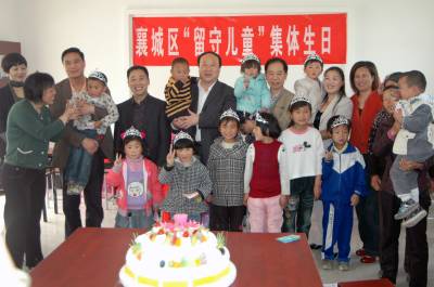 2011年4月22日是襄城区卧龙镇垱华村留守儿童陈洋9岁生日,这天她将终身难忘。因为她不仅收到了襄城区委副书记刘文宝代表区委政府送来的生日蛋糕、书包、旅行杯、被子等好多好多生日礼物,还得到了爱心爸妈的亲切关怀。和她一样,来自周边的华岗村、魏湾村、白马村、青山村、回龙村等6个村的12名儿童收到的同样的礼物和祝福。襄城区妇联、教育局、计生局、国土资源分局陈小五西饼屋等单位联合组织了此次集体生日活动,在襄城挂职区委常委、副区长的省物价局价格论证中心主任曾青松得到这此消息后,专门从外地赶回襄城参加活动,并以个人名誉为现场过生日的12名小朋友每人送去100元的生日红包,鼓励他们好好学习,感恩社会。