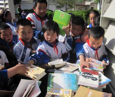 民盟省委送“粮”到关帝 4月22日,郧县南化塘镇关帝小学的学生们正争阅民主同盟省委刚送来的课外书籍。当日,民主同盟湖北省委专职副主委王耀辉一行,来到革命老区南化塘镇关帝小学,送给该校1800多册工具书及小学生课外读物,支持该校图书室建设,并表示今后将该校作为对口帮扶点,支持该校办优办强教育。 郧县新闻宣传中心姚年明13508678222