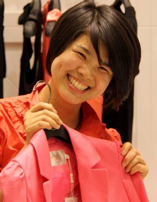热情待客的服务员曾小丽笑迎顾客 童汉芳 2011.4.21.摄于武昌徐东销品茂一服装专店