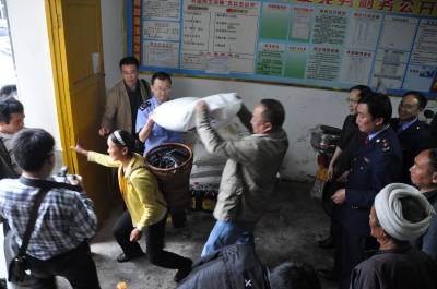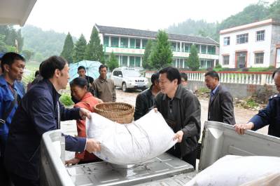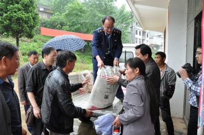 5月23日,宣恩县万寨乡芷药坪村16组特困户孙文章接过恩施州工商局和宣恩县工商局机关党员干部职工捐赠的肥料、食用油等物资时,兴奋不已。